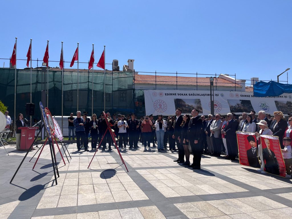 Edirne’de CHP İl Başkanlığı tarafından 23 Nisan Ulusal Egemenlik ve Çocuk Bayramı dolayısıyla çelenk sunma töreni düzenlendi. Törende konuşan İl Başkanvekili Buse Altay, Atatürk’ün bugünü çocuklara hediye etmesinin, Cumhuriyetin temeline yerleştirilen barış, umut ve eşitlik anlayışının göstergesi olduğunu dile getirdi.