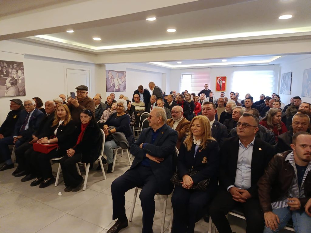 Törenin açılış konuşmasını yapan Merkez İlçe Başkanı Volkan Akgüngör, tutuklu bulunan partililere değinerek, "Aslında biraz buruk bir bayram geçiriyoruz. Bunun sebebi de hepinizin bildiği üzere, haksız ve hukuksuz bir şekilde şu anda tutsak tutulan belediye başkanlarımız ve birçok partilimizdir. Ancak şunu özellikle ifade etmek isterim ki bu burukluk hiçbir zaman umutsuzluğa dönüşmemiştir. Aksine, bugün baktığımızda daha güçlü, daha kararlı ve daha inançlıyız. Bu vesileyle, mücadelemizi her zamankinden daha güçlü bir şekilde sürdürmeye devam edeceğiz. İnancımızdan, kararlılığımızdan ve birlikteliğimizden asla vazgeçmeyeceğiz. Hep birlikte, omuz omuza vererek daha aydınlık yarınlara ulaşacağımıza yürekten inanıyorum" şeklinde konuştu.