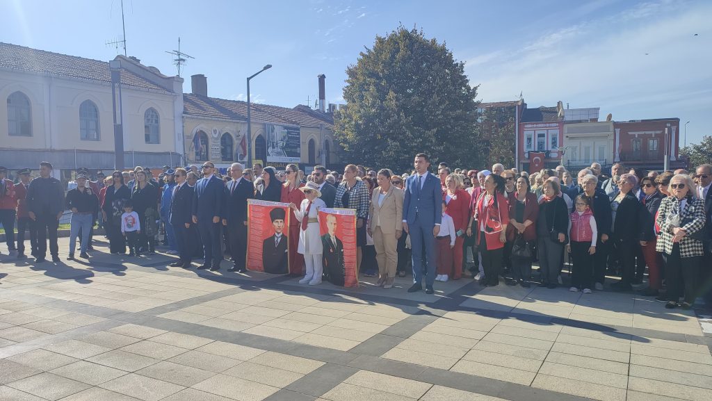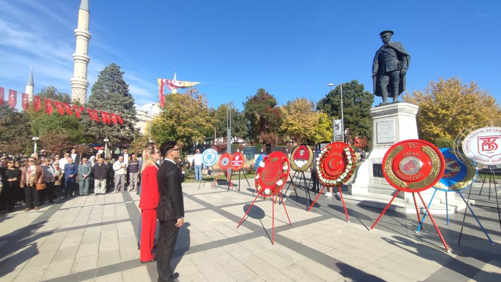 CHP İl Başkanı Harika Taybıllı tarafından anıta çelenk sunulmasıyla başlayan tören, başta Ulu Önder Gazi Mustafa Kemal Atatürk ve silah arkadaşları olmak üzere tüm şehitler anısına saygı duruşunda bulunulması ve Edirne Belediye Bandosu eşliğinde İstiklal Marşı’nın okunmasıyla devam etti.