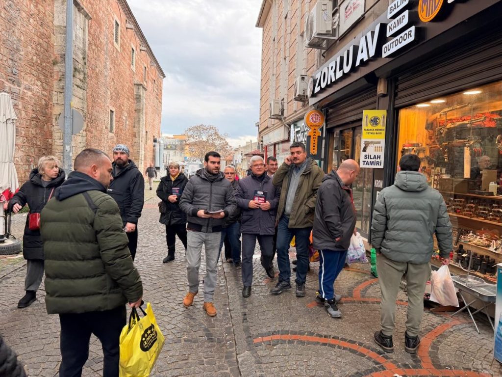 Cumhuriyet Halk Partisi (CHP) Edirne İl Başkanlığı, kent merkezinin en yoğun noktalarından biri olan Saraçlar Caddesi’nde esnaf ve çalışanları ziyaret ederek, partinin emekçi ve işvereni birlikte gözeten ekonomi ve ücret politikalarını anlattı.