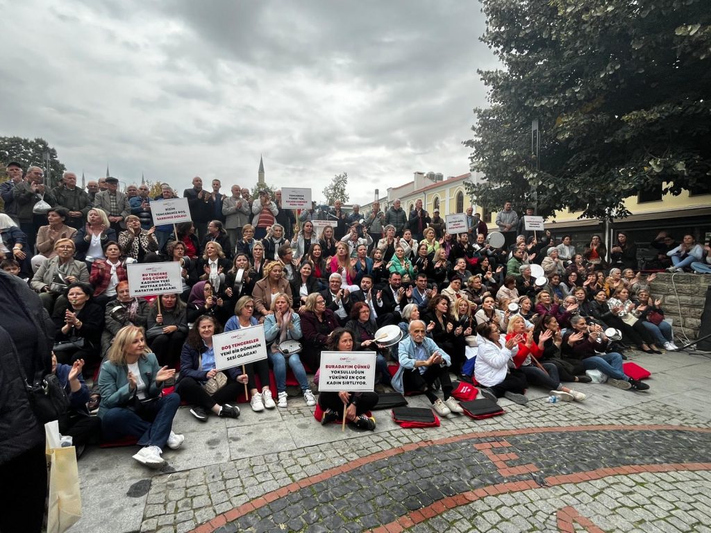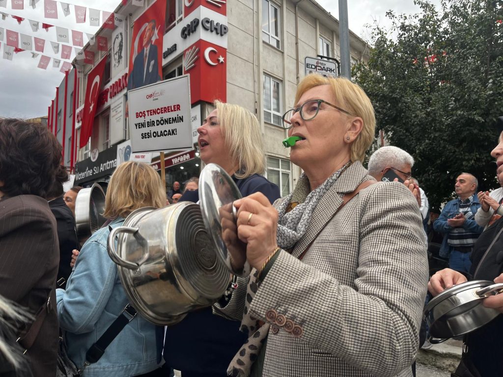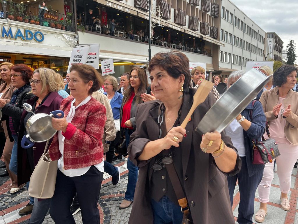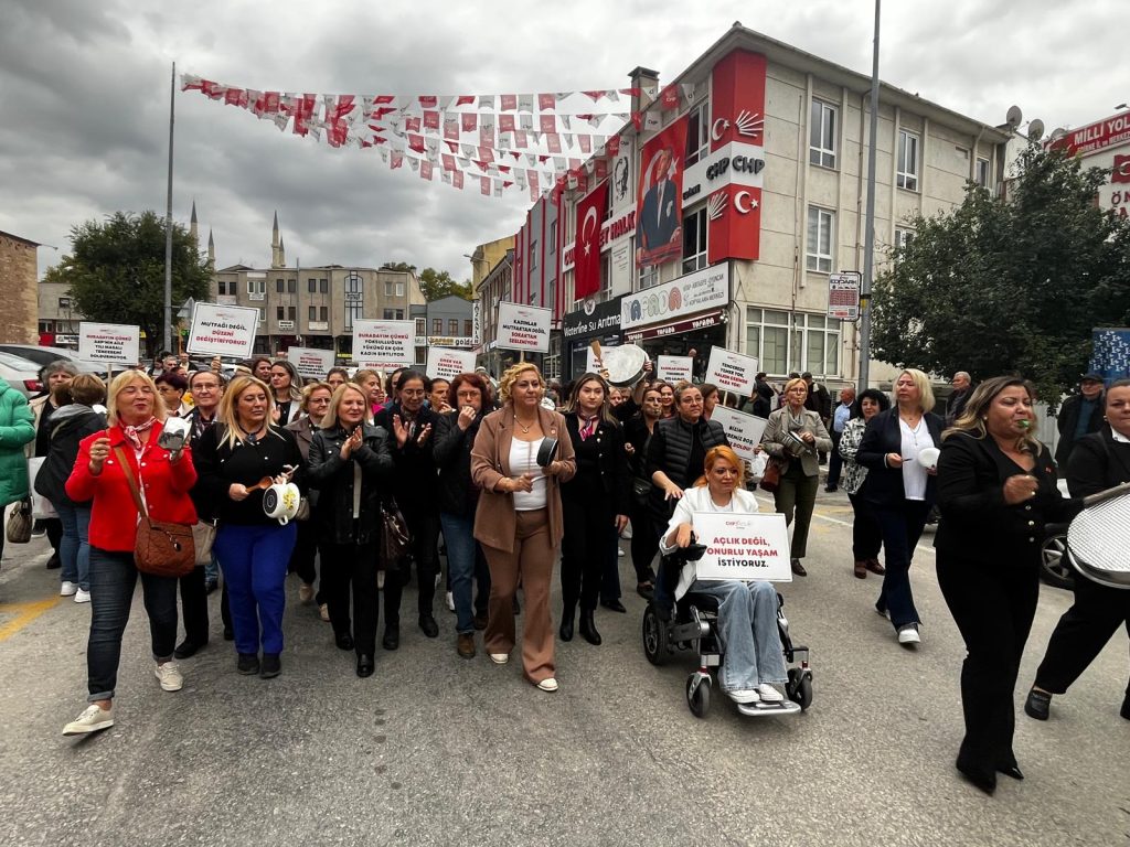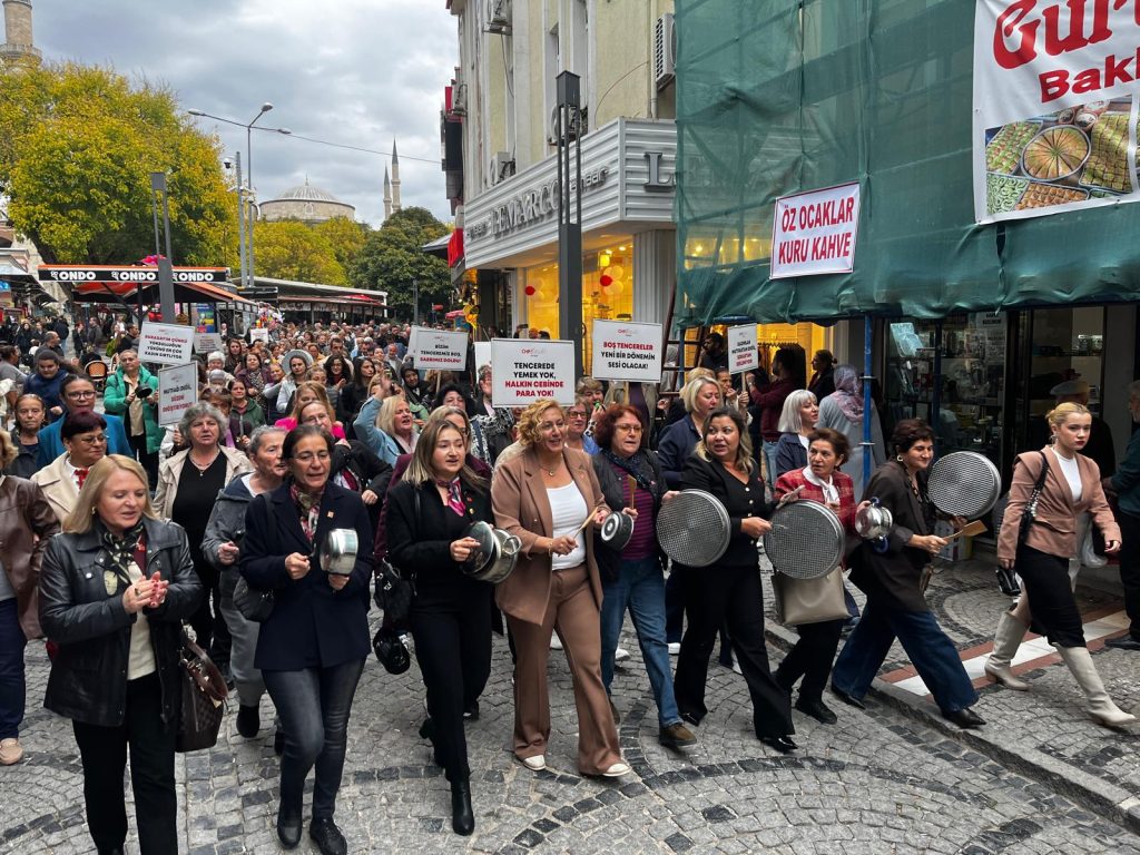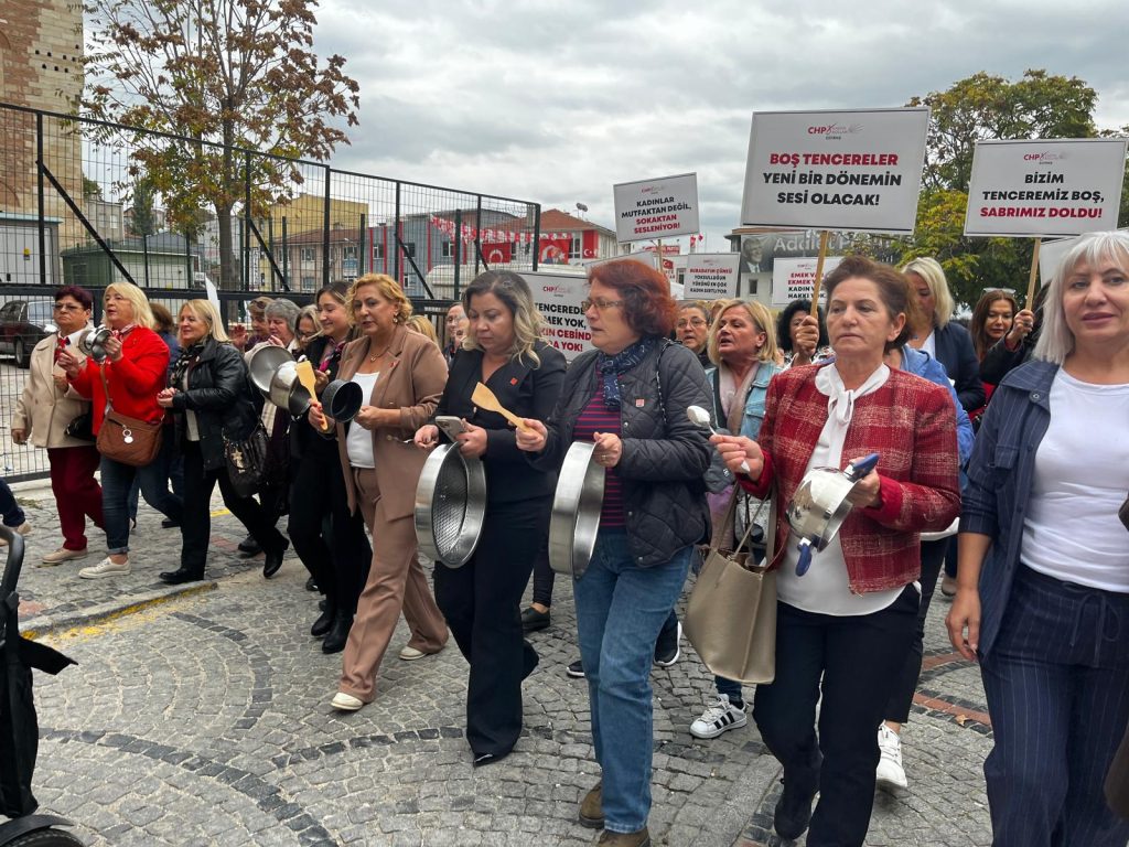 CHP’li kadınlar, 17 Ekim Dünya Yoksullukla Mücadele Günü’nde boş tencerelerle yürüyerek ekonomik krizi protesto etti.