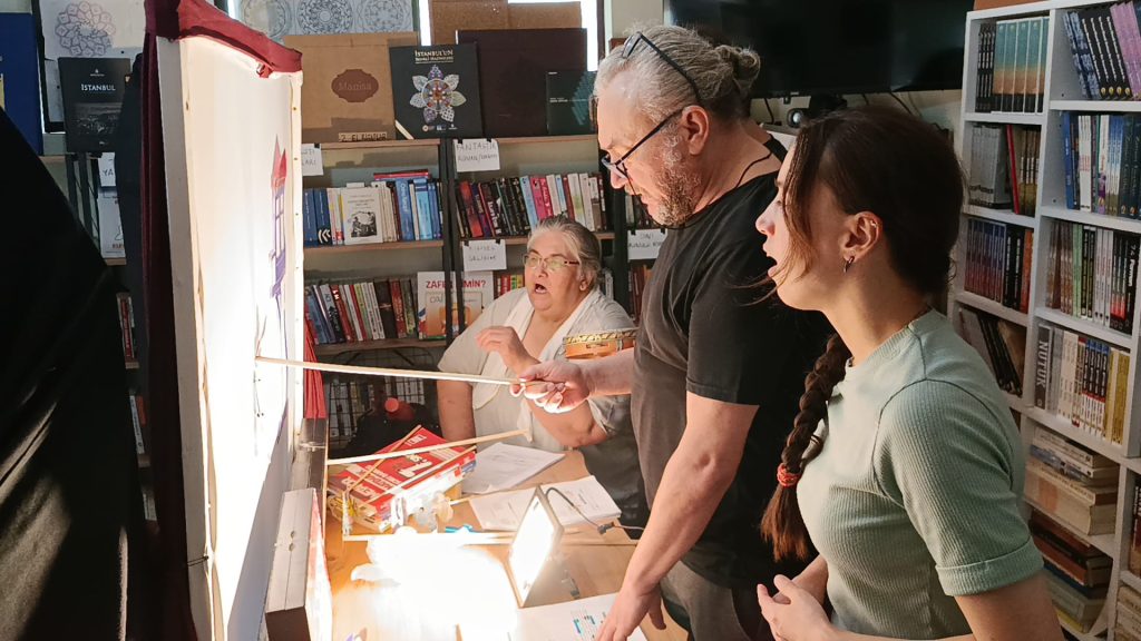“Karagöz’ü Gören Var mı?” adlı oyunda; Karagöz ve Çelebi’yi Yunus Emre Altınok, Hacivat ve Temel’i Özer Özgün, Beberuhi’yi Semra Arda, Karagöz’ün Karısı’nı Serap Engin canlandırıyor. Ekibe Batuhan Yapıcı da teknik destek sağlıyor. Fatih Mahallesi’nde bir kafede sahnelenen gösterimlere çocuklar yoğun ilgi gösteriyor.