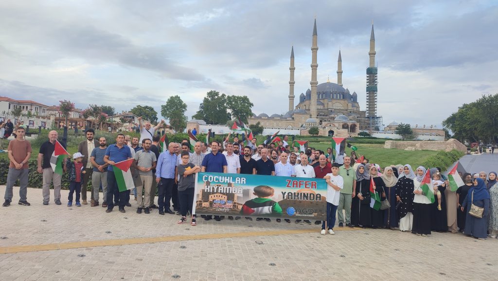 Anadolu Gençlik Derneği (AGD) Edirne Şubesi tarafından, İsrail'in Gazze'ye olan saldırılarında hayatını kaybeden çocuklara dikkat çekme amacıyla, çocukların katılımıyla basın açıklaması gerçekleştirildi. Çocuklar adına basın açıklamasını okuyan AGD Edirne YAZ-ET Öğrencisi Emirhan Demir; "Bizim ellerimiz kalem tutarken, kitap tutarken, playstation tutarken, Gazzeli çocukların elleri anne babasının parçalanmış bedenlerini tutmasın diye, Gazzeli çocukların elleri, elleri olsun diye. Gazzeli çocuklara Türkiye’nin anne babaları destek olsun, çocukları da destek olsun diye" ifadelerini kullandı.