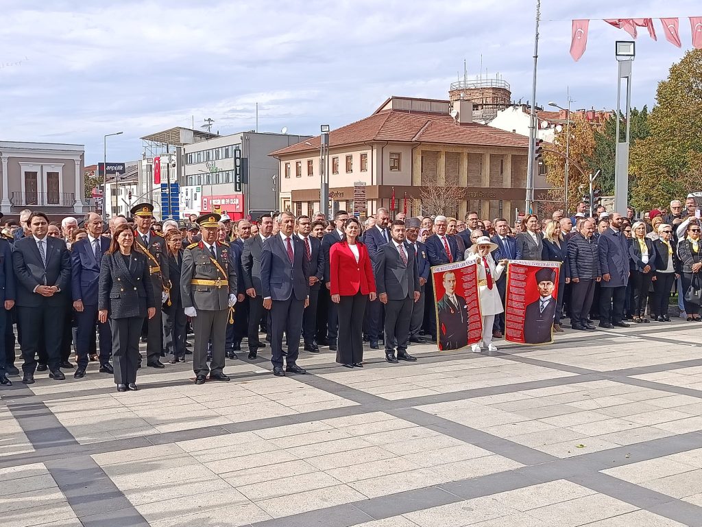 Vali Sezer, Garnizon Komutanı Kolcu ve Belediye Başkanı Gencan’ın anıta çelenk sunmasıyla başlayan tören, başta Ulu Önder Gazi Mustafa Kemal Atatürk ve silah arkadaşları olmak üzere tüm şehitlerin anısına saygı duruşunun İstiklal Marşı’nın okunmasıyla devam etti.