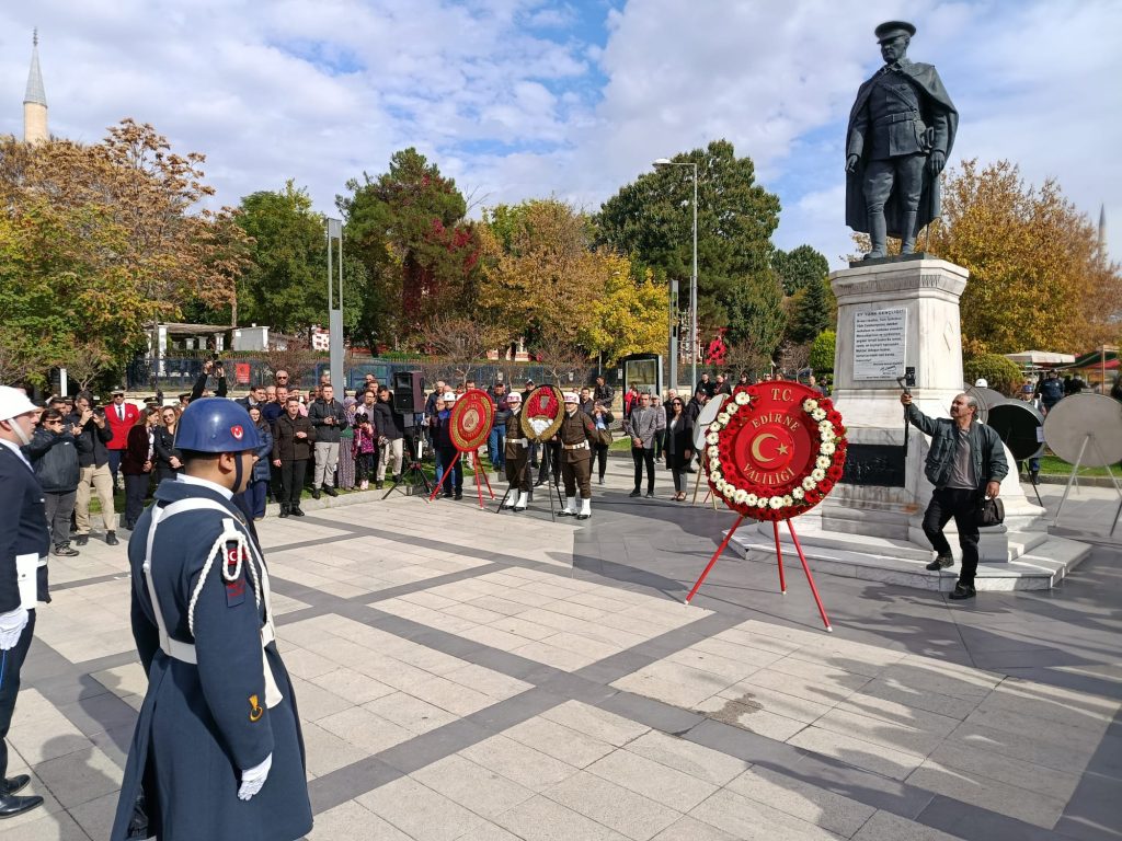Edirne’de 29 Ekim Cumhuriyet Bayramı kutlamaları, sabah saatlerinde Atatürk Anıtı’nda düzenlenen çelenk sunma töreniyle başladı.