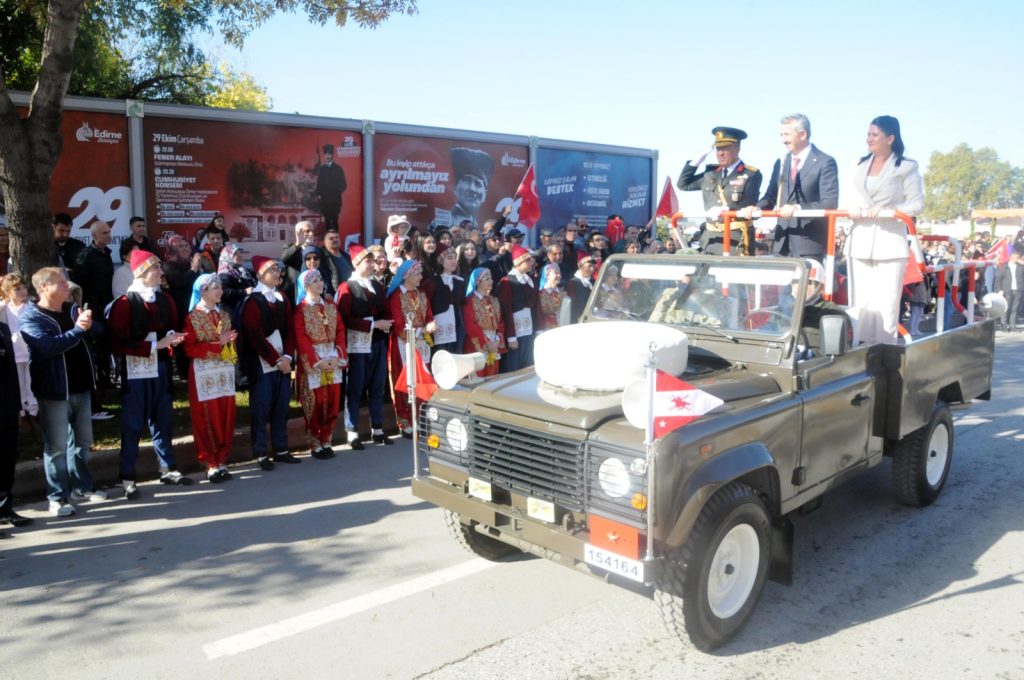 Vali Yunus Sezer, Garnizon Komutanı Tuğgeneral Yüksel Kolcu ve Edirne Belediye Başkanı Filiz Gencan’ın, Atatürk Bulvarı üzerinde kurulan tören alanında halkı selamlamasıyla kutlamalar devam etti. Törende ayrıca 29 Ekim Cumhuriyet Bayramı dolayısıyla düzenlenen resim, şiir ve kompozisyon yarışmalarında dereceye giren öğrencilere ödülleri takdim edildi.
