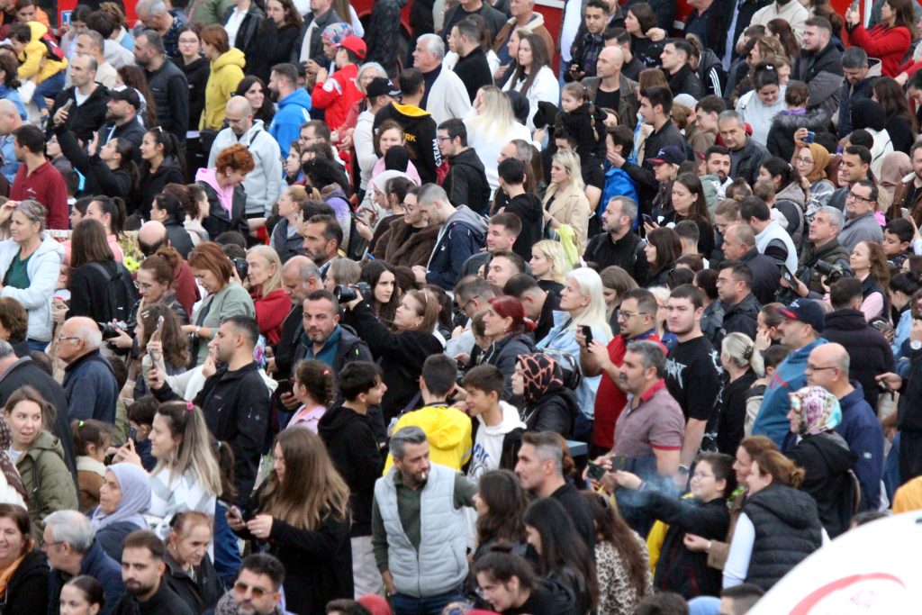 Edirneliler, gösteriyi izlemek için sabah saatlerinden itibaren UNESCO İnsanlığın Somut Olmayan Kültürel Mirası Listesi’nde yer alan Selimiye Camisi Meydanı’nda toplandı. Ellerinde Türk bayraklarıyla alanı dolduran vatandaşlar, milli gurur anlarına tanıklık etti. Saat 16.30'da başlayan gösteride, Çorlu Havalimanı’ndan kalkan 6 Türk Yıldızı pilotu, Edirne semalarına çıkarak halkı selamladı. Kırmızı-beyaz izler bırakan jetler, birbirinden zorlu manevralarla gökyüzünü adeta sahneye çevirdi. Pilotların kusursuz koordinasyon içinde gerçekleştirdiği akrobasi hareketleri, vatandaşlar tarafından uzun süre alkışlandı.