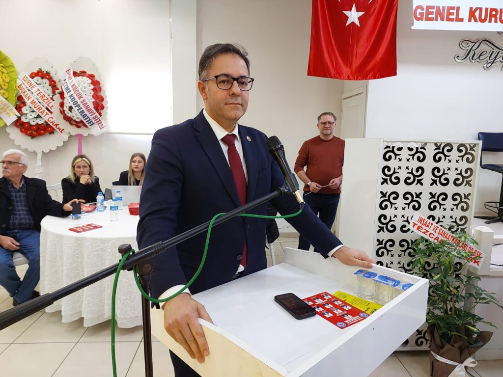 Genel kurulda konuşan Edirne Belediye Başkan Vekili Cenk Ergüden, “Bugün burada Edirne Demirciler ve Kaynakçılar Esnaf Odamızın Genel Kurulu vesilesiyle bir arada olmaktan büyük bir memnuniyet duyuyorum. Alın teriyle üretim yapan, şehrimizin sanayisine, istihdamına ve ekonomisine önemli katkılar sunan siz değerli esnaflarımızla aynı ortamda bulunmak bizler için son derece kıymetlidir. Demircilik ve kaynakçılık mesleği yalnızca bir iş kolu değildir; sabrın, ustalığın ve emeğin birleştiği kadim bir zanaattır. Şehrimizin gelişiminde, altyapısından üstyapısına kadar pek çok alanda sizlerin imzası, emeği ve alın teri vardır. Bu katkıyı her zaman takdirle karşılıyor, şehrimize kattığınız değerin farkında olduğumuzu özellikle ifade etmek istiyorum. Bugün aramızda farklı esnaf odalarımızın başkanlarının da bulunması ayrıca anlamlıdır. Bu tablo, Edirne’deki esnaf dayanışmasının ve kurumsal birlikteliğin en güzel örneklerinden biridir. Birlik ve beraberlik içerisinde hareket ettiğimiz sürece, hem esnafımız hem de şehrimiz adına daha güçlü adımlar atacağımıza yürekten inanıyorum. Belediyemiz, tüm oda başkanlarımız ve esnafımızla birlikte ortak akıl ve iş birliği anlayışıyla çalışmaya devam edecektir. Yeni dönemde görev alacak yönetime şimdiden başarılar diliyorum. Bugüne kadar görev almış, emek vermiş tüm oda yöneticilerimize de teşekkürlerimizi iletiyorum” ifadelerini kullandı.