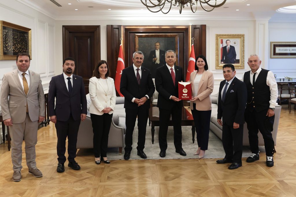 Heyet, Türkiye Büyük Millet Meclisi (TBMM) Başkanı Numan Kurtulmuş, CHP Genel Başkanı Özgür Özel, İçişleri Bakanı Ali Yerlikaya, Enerji ve Tabii Kaynaklar Bakanı Alparslan Bayraktar, Gençlik ve Spor Bakanı Osman Aşkın Bak, Tarım ve Orman Bakanı İbrahim Yumaklı, Sağlık Bakanı Fahrettin Koca ile Cumhurbaşkanı Strateji ve Bütçe Başkanı İbrahim Şenel’e Kırkpınar’ın asırlık geleneği olan ‘kırmızı dipli mum’ takdim ederek 663’üncü Tarihi Kırkpınar Yağlı Güreşleri’ni takip etmek üzere Edirne’ye davet etti.