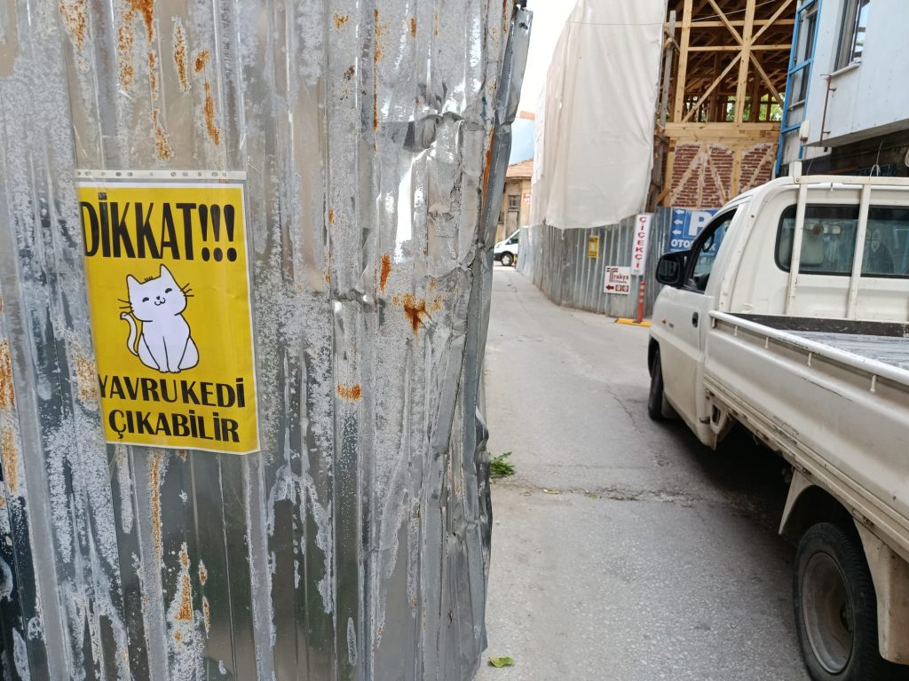 Edirne’nin tarihi dokusuyla öne çıkan Sabuni Mahallesi’nde yaşayan 46 yaşındaki Murat Oruntak, yıllardır mahallenin kedilerini besliyor, çeşitli noktalara kaplara su bırakıyor. Dar ve kaldırımı olmayan sokaklarıyla bilinen mahallede Oruntak’ın beslediği yavru kedilerden birinin birkaç gün önce araç çarpması sonucu ölmesi, onu harekete geçirdi. Yaşadığı üzüntü üzerine Oruntak, sürücülere uyarı olsun diye mahalledeki bazı noktalara “Dikkat, Yavru Kedi Çıkabilir” yazılı afişler astı.