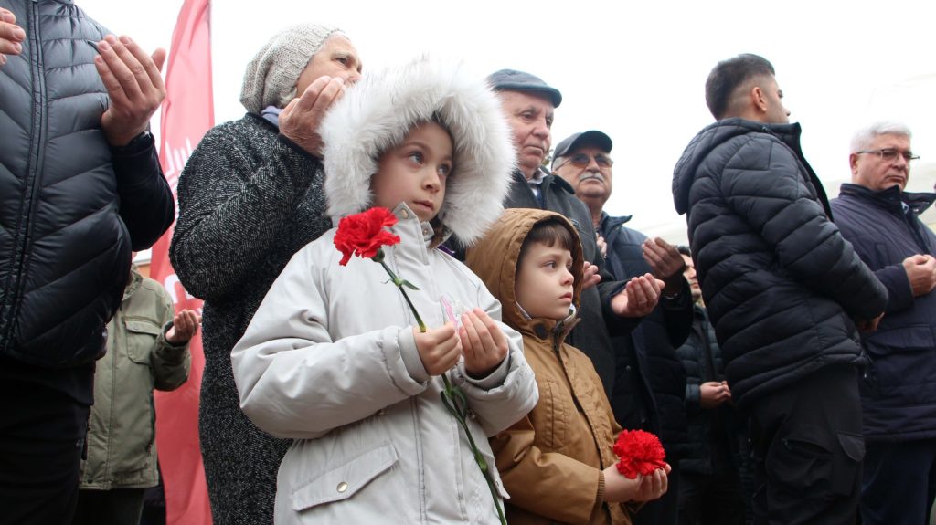 Türkan bebek anıtına çelenk sunulmasıyla başlayan anma töreni, saygı duruşunda bulunulması ve İstiklal Marşı’nın okunmasıyla devam etti.