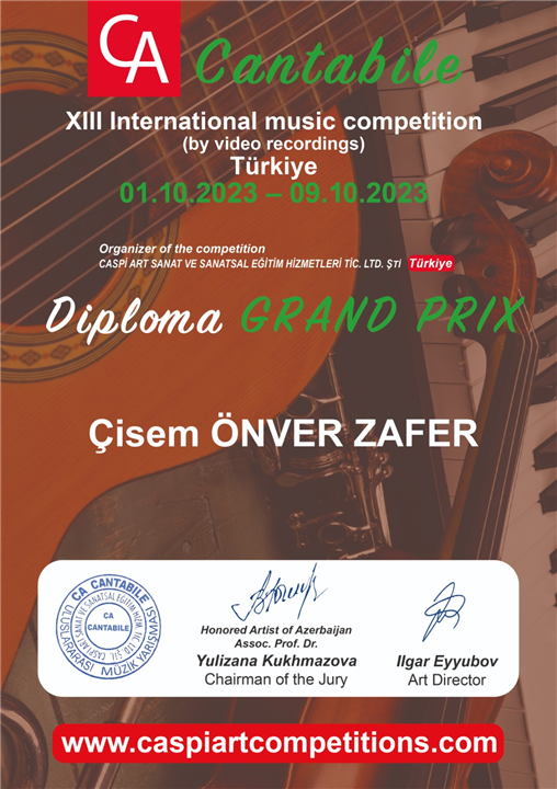 Trakya Üniversitesi Devlet Konservatuvarı Üflemeli ve Vurma Çalgılar Ana Sanat Dalı Başkanı Doç. Çisem Önver, 'IXIII. International Music Competition Kammerton' ve 'IXIII. International Music Competition Cantabile' yarışmalarında Grand Prix (Jüri Büyük Ödülü) almaya hak kazandı.