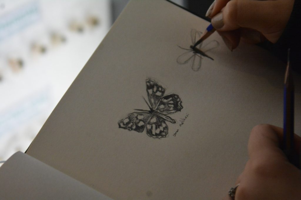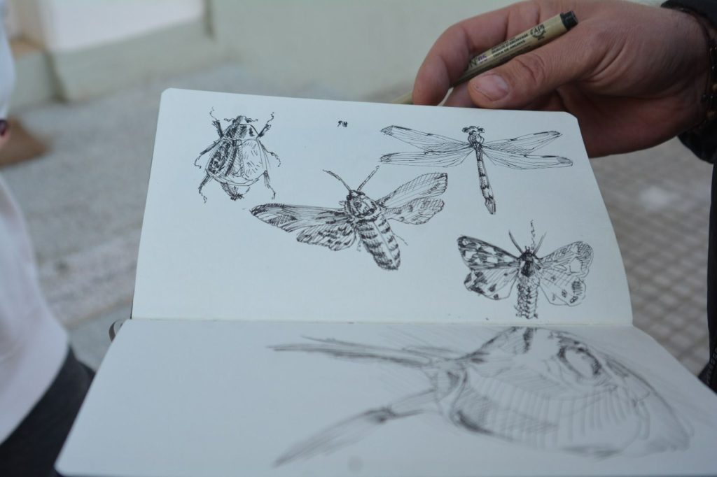Fakültenin Resim Bölümünden Dr. Öğr. Üyesi Ö. Gökhan Temizel yönetimindeki derslerini Doğa Tarihi Müzesinde yapan öğrenciler, atölye dışındaki bir ortamda çalışmalarını gerçekleştirirken aynı zamanda resmin güçlü yanı olan desen pratiklerini farklı formlar üzerinden güçlendirme imkanı buluyor.