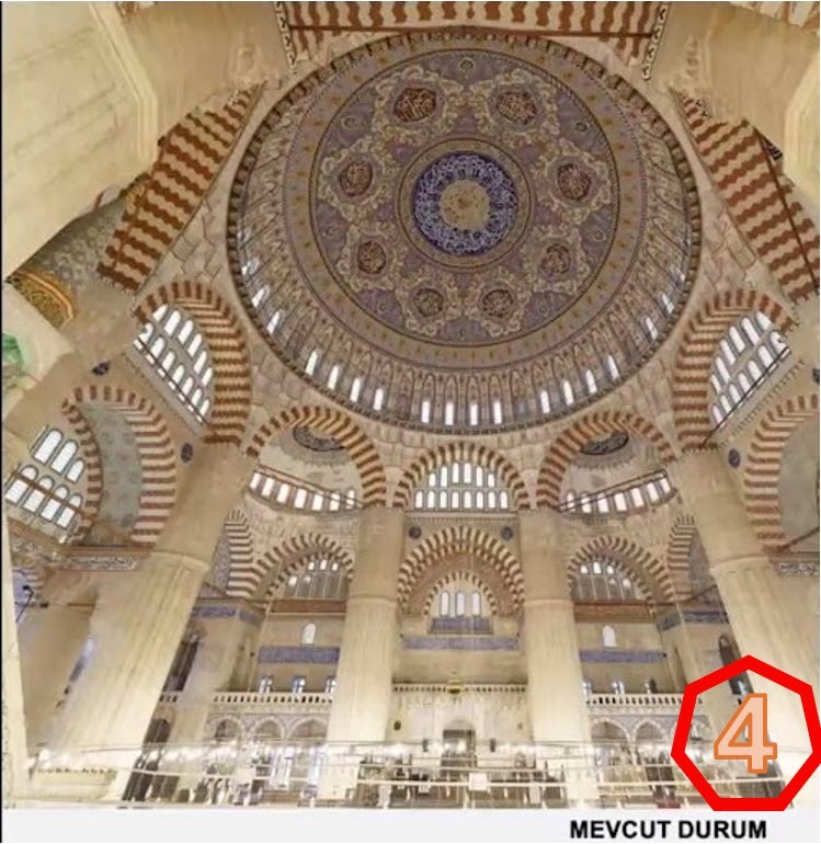 Tarihi yapıların restorasyonunda varsayımlara dayanarak değişiklik yapılamayacağını vurgulayan Döleneken, “Osmanlı döneminde de Selimiye Camisi değişik restorasyonlar geçirdi. Özellikle de belli dönemlerde depremler, yıpranmalarla kubbesindeki süslemeler de, kalem işleri de değiştirildi ama kural şu; siz böyle bir şey yaparken, aklınıza gelen ya da tahmin ettiğiniz değil, bulabildiğiniz son en alt kattaki süslemeleri yapabilirsiniz. Uluslararası kurallar böyle. Ne yazık ki şu andaki önerilenle ilgili böyle bir belge yok” şeklinde konuştu.
