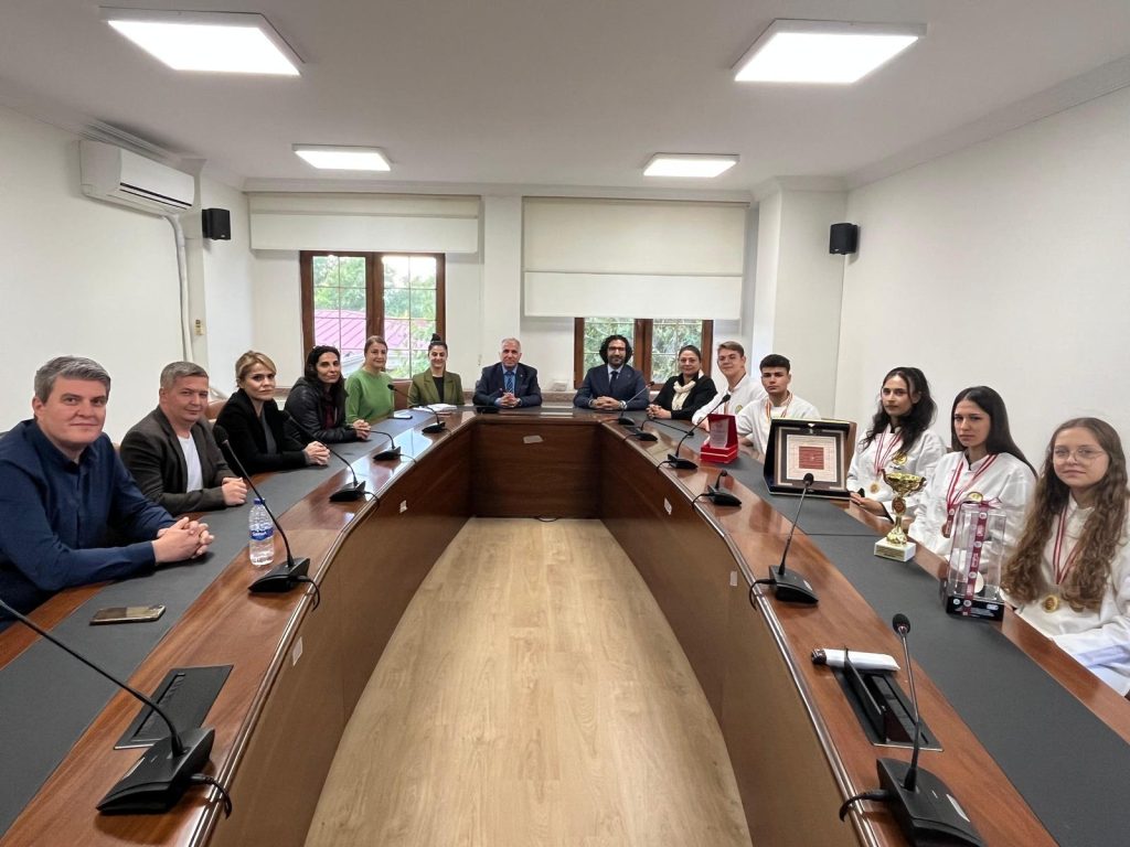 Yiyecek İçecek Hizmetleri Alanı öğretmenleri ve Okul Müdürü İlhan Dinç ile birlikte Ticaret İl Müdürü Mustafa Kurt’u ziyaret eden öğrenciler, kazandıkları başarıları paylaştı. Mustafa Kurt, öğrencileri, öğretmenleri ve okul yönetimini tebrik ederek başarılarının devamını diledi.