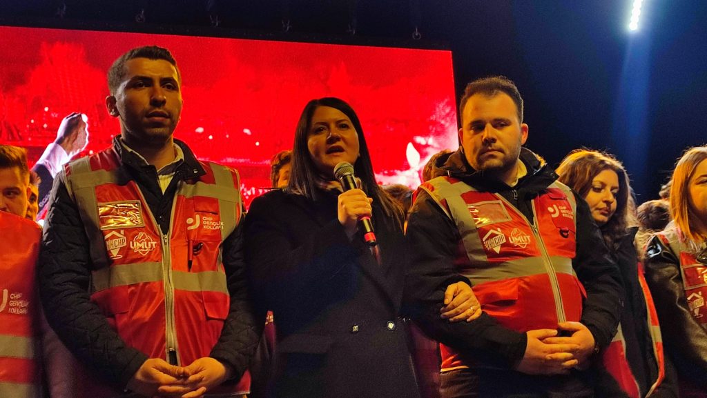 Sahneye CHP Gençlik Kolları üyeleriyle birlikte çıkan Edirne Belediye Başkanı Filiz Gencan Akın, Ekrem İmamoğlu özgürlüğüne kavuşana dek her akşam sokaklarda mücadele edeceklerini söyledi. Gencan Akın; “Ekrem başkan özgürlüğüne kavuşana kadar, her gece sokaktayız, her gece mücadele edeceğiz. Benim genç kardeşlerim, benim Edirneli hemşehrilerim asla korkmazlar, asla mücadeleden vazgeçmezler, bunu herkes böyle bilsin. Türkiye Cumhuriyeti’ndeki hiçbir vatandaşımız, bu hukuksuzluğa asla tahammül edemez. Ekrem başkan ‘Bir gideriz, bin geliriz’ dedi. Hepimiz Ekrem İmamoğlu’yuz. Hepimiz onun yanındayız. Buradan Edirneli hemşehrilerime sesleniyorum, partimize üye olan, olmayan, hukukun üstünlüğüne, demokrasiye, savunmanın üstünlüğüne inanan Edirneli hemşehrilerime sesleniyorum; gelin 23 Mart’ta sandıklarda beraber olalım, birlikte mücadele edelim, bu düzeni birlikte değiştirelim. Egemenlik, kayıtsız şartsız milletindir” şeklinde konuştu.
