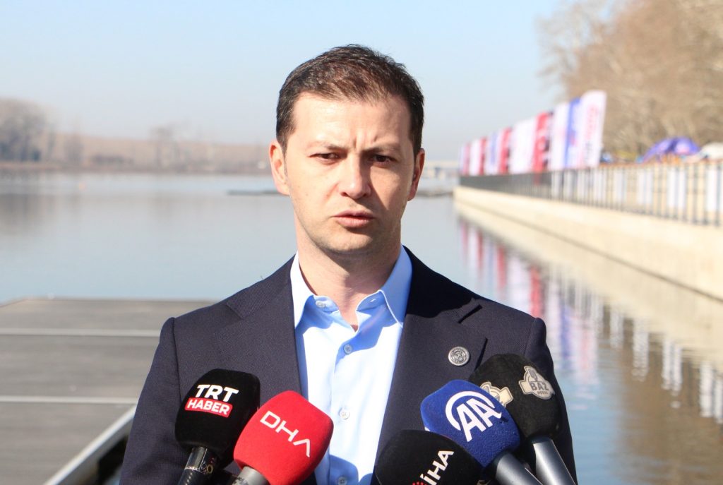Edirne Valisi Yunus Sezer ve Türkiye Kürek Federasyonu Başkanı Erhan Ertürk, kentin Meriç Nehri’nde 7-9 Mart tarihleri arasında düzenlenen ve bugün saat 10.00’da eleme yarışlarıyla başlayan Büyükler Türkiye Şampiyonası’nın ilk gününde parkur alanında basın açıklaması gerçekleştirdi.
