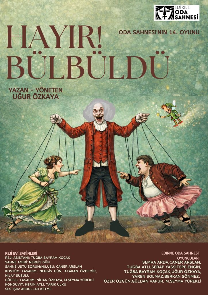 Yazarlığını ve yönetmenliğini Uğur Özkaya’nın üstlendiği “Hayır! Bülbül’dü”, klasik anlatılara göndermeler yapan yapısı, mizah ve hicvi bir arada kullanan diliyle izleyiciyi hem güldürmeyi hem de düşündürmeyi amaçlıyor. Oyunda, ipleri elinde tutan bir figür üzerinden insan ilişkileri, yönlendirme, güç ve irade kavramları sahneye taşınıyor.