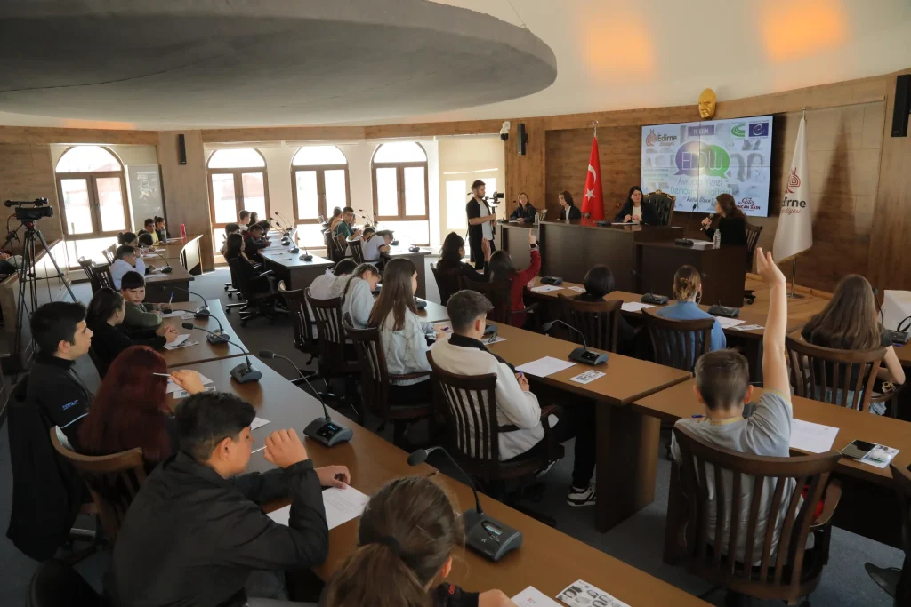 Avrupa Yerel Demokrasi Haftası kapsamında düzenlenen bu özel buluşma, Edirne Kent Konseyi ve Edirne Belediyesi işbirliğiyle hayata geçirildi. Edirne Belediyesi Atatürk Kültür Merkezi ve Belediye Konservatuvarı Edirne Belediye Meclisi Toplantı Salonu'nda gerçekleşen toplantıya, Edirne’nin farklı okullarından 40 öğrenci katıldı.
