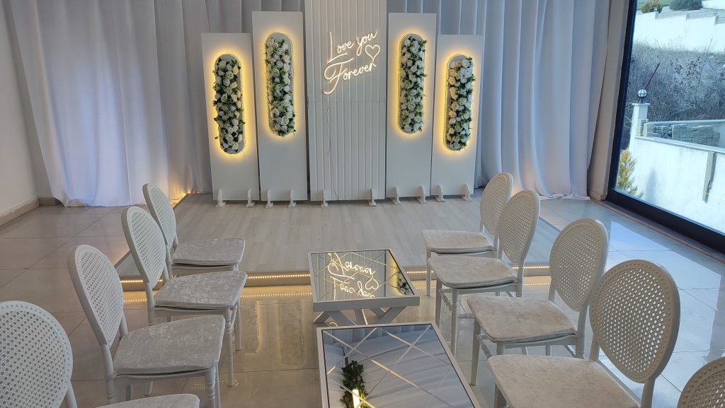 Edirne’de genç çift Utku ve Selen Nur Aygün’ün girişimleriyle kente kazandırılan ‘Lena Davet Evi & Organizasyon’, bugün gerçekleştirilen açılış töreniyle hizmet vermeye başladı. Davet evi; söz kesme, kız isteme, doğum günü ve dua organizasyonları gibi birçok etkinlikle misafirlerini ağırlayacak.