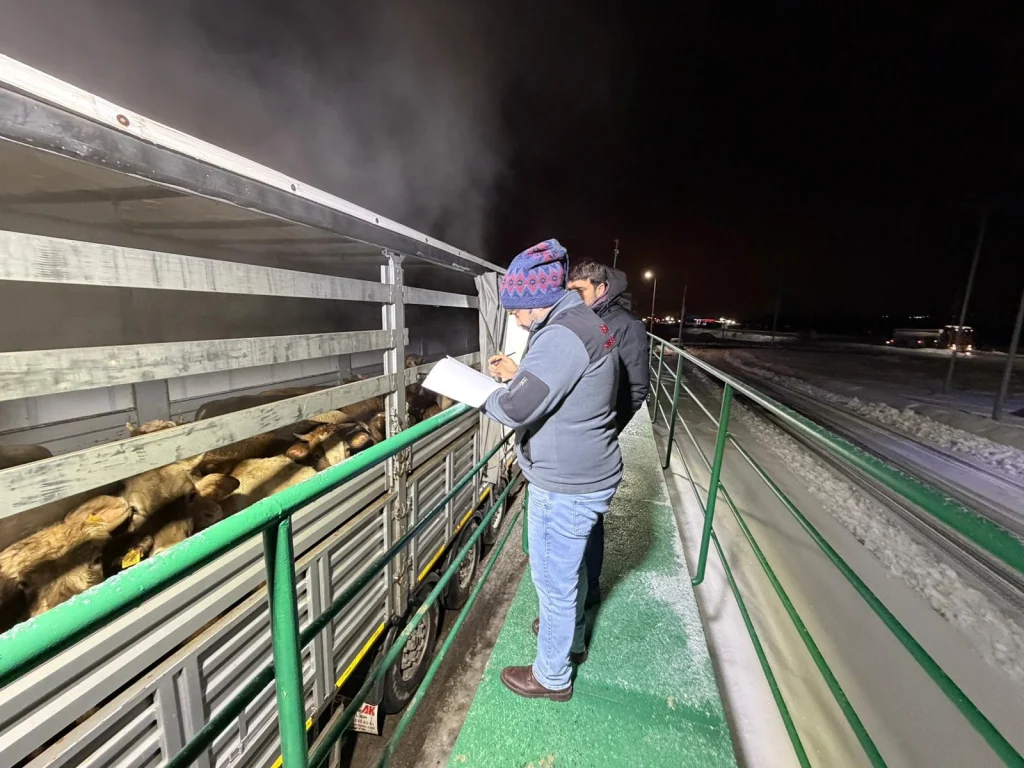 Edirne İl Tarım ve Orman Müdürlüğü veteriner hekimleri, Bakanlık görevlendirmesiyle Erzurum’daki Veteriner Yol Kontrol ve Denetim İstasyonu’nda hayvan hareketleri ve sevk belgelerine yönelik denetimlere katıldı.