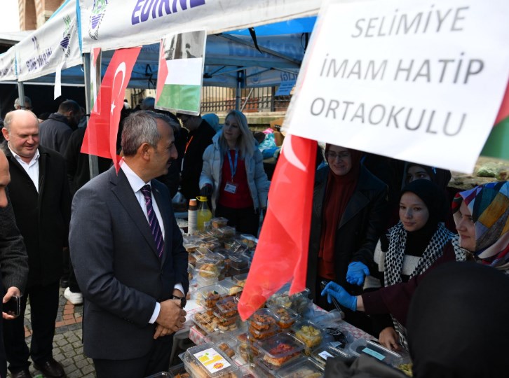 Eski Camii önünde Edirne’deki okullardaki öğrencilerin hazırladığı ürünlerin satışa sunulduğu ‘Edirne’den Gazze’ye Yardım’ Kermesi düzenlendi. Edirne İl Milli Eğitim Müdürlüğü’nce düzenlenen kermesi Edirne Valisi Yunus Sezer de ziyaret etti. Sezer, Edirne’deki 18 ortaokul ve lise öğrencinin el emeği ile hazırladığı “Edirne’den Gazze’ye Yardım Kermesinde öğrencilerle sohbet etti. Haber Merkezi
