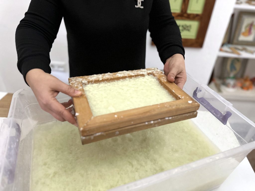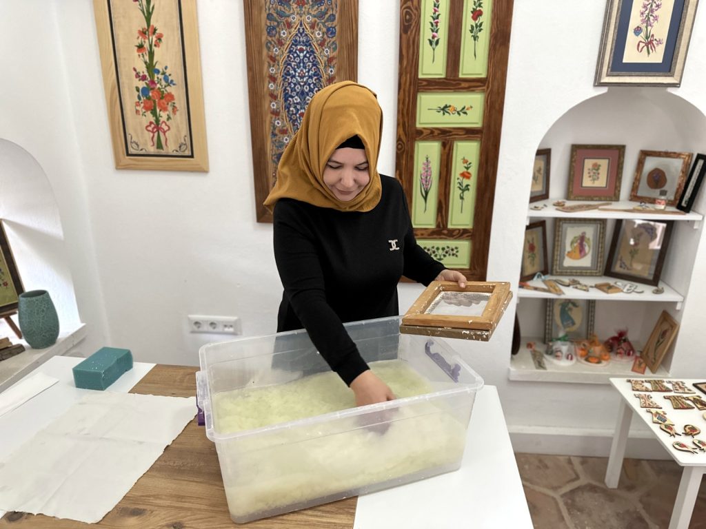 Edirne’de 15 yıldır kalemkarlık yapan, Kültür ve Turizm Bakanlığı onaylı Edirnekari sanatçısı Sevilay Güler, 10 yıl önce gittiği Makedonya’da tanıştığı el yapımı kâğıt üretimini kendi sanatına uyarlamaya karar verdi.