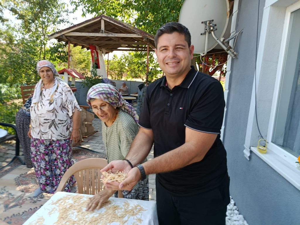Genç Çiftçiler Derneği Başkanı Egemen Ilgın, buradaki anne babaların, şehirlerde yaşayan evlatlarına da bu kışlıklardan gönderdiğini kaydederek; “Bugün kendi köyüm olan Sazlıdere’de, köyümüzdeki evimizdeyiz. Doğduğumuz günden bu yana annelerimizin geleneksel olarak, dayanışma içinde sürdürdüğü kışlık hazırlıkları ziyaret ettik. Makarna, yufka, tarhana, kuskus gibi kışın sofralarımızda yer alacak ürünler hazırlanıyor. Bu gelenek yıllardır köyümüzde sürüyor. Her gün bir aileye gidilerek o evin kışlık ihtiyacı karşılanıyor. Bildiğiniz gibi köyümüzde artık genç nüfus kalmadı, herkesin kızı, oğlu şehirlerde yaşıyor. Tabii şehirlerde de geçim şartlarının zorluğunu biliyorsunuz. İşte burada anne babalar, çocuklarına kışlık yaparak onların geçim yükünü biraz olsun hafifletmeye, destek olmaya çalışıyorlar. Bu hem keyifli hem de anlamlı bir dayanışma. Aslında bizim geleneklerimizin, imecemizin yaşatıldığı son alanlardan biri diyebiliriz” şeklinde konuştu.
