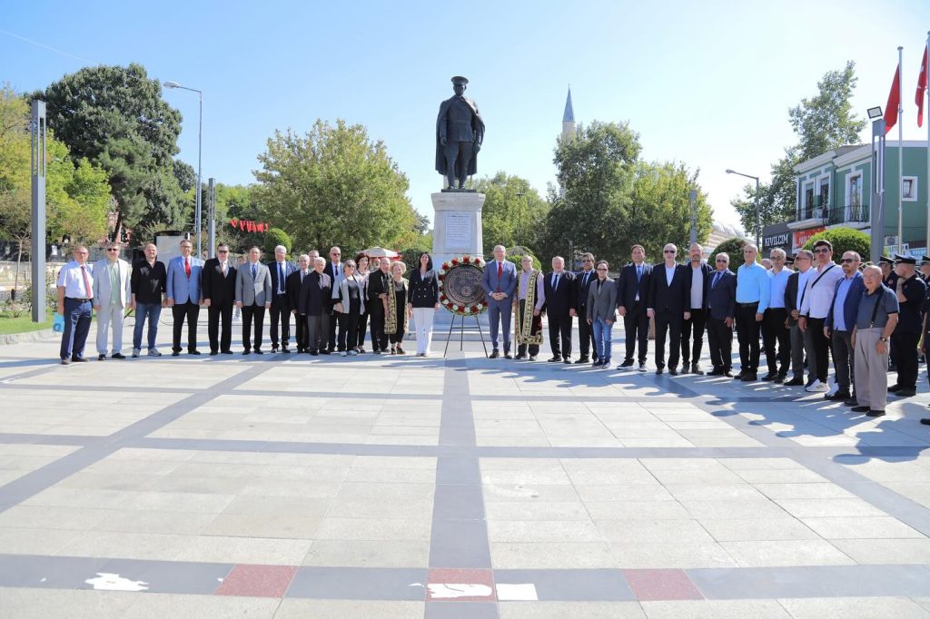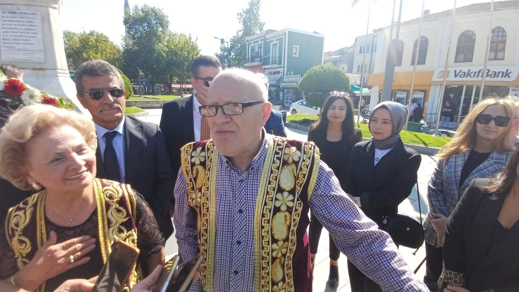Törene; yılın ahileri olarak seçilen 51 yıllık kuaför 72 yaşındaki Şükran Çetin ve 60 yıldır yorgancılık yapan Ali Bıyık'la birlikte Edirne Belediye Başkanı Filiz Gencan Akın, Ticaret İl Müdürü Mahmut Altun, Edirne Esnaf ve Sanatkar Odaları Birliği (EDESOB) Başkanı Kemal Cingöz, kurum ve kuruluş temsilcileriyle esnaflar katılım sağladı. EDESOB Başkanı Kemal Cingöz tarafından anıta çelenk sunulmasıyla başlayan tören, saygı duruşunda bulunulması ve İstiklal Marşı’nın okunmasıyla devam etti.