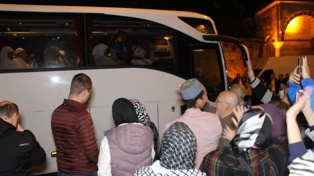 Konuşmaların ardından hacı adayları yatsı namazını kıldı. Namaz sonrası otobüslerle hac yolculuğuna uğurlandılar. Hacı adayları ve yakınları arasında duygulu anlar yaşandı.