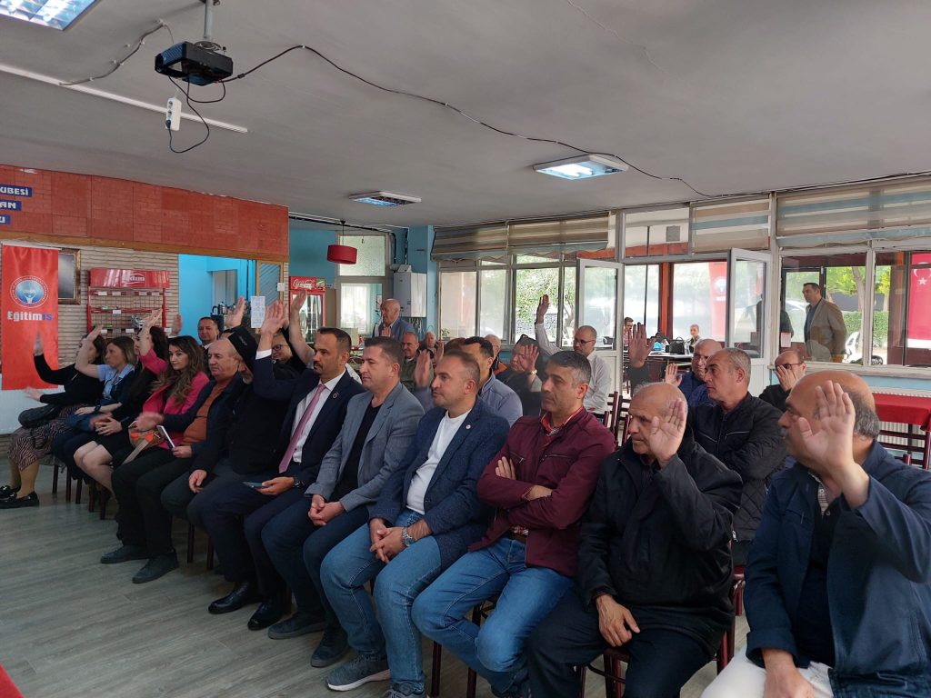 Yönetim kurulu faaliyet ve denetim kurulu raporlarının okunarak ibra edildiği genel kurulda konuşmalarına ardından, Eğitim-İş Edirne Şubesi'ne bağlı 213 delege oy kullandı. Tek listeyle yapılan seçim sonucunda yönetim kurulu; Nedim Zobar, Olcay Dal, Erhan Toprak, Gülsüm Erkıran, Reyhan Kaplan, Güngör Gerey’den, denetleme kurulu; Murat Akçay, Gonca Saygın, Umut Atilla’dan, disiplin kurulu; Musa Uludağ, Hilal Seçkin Karaca, Özgür Alpay’dan ve genel merkez delegeleri; Nedim Zobar, Olcay Dal, Erhan Toprak, Murat Akçay’dan oluştu. Damla GÖÇ AKYÜZ