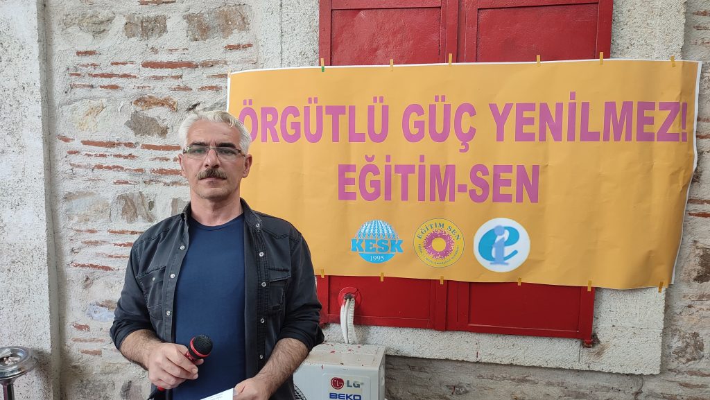 Etkinlikte konuşan Eğitim-Sen Hukuk Sekreteri Erdal Demirpolat, tüm haksızlık ve hukuksuzluğa karşın, öğretmenlerin 5 Ekim Dünya Öğretmenler Günü’nü kutladı. Demirpolat; “Bu yıl 5 Ekim kutlamaları, Eğitim Enternasyonali tarafından ‘öğretmenin sesine değer ver’ şiarıyla kutlanmaktadır. Yıllardır eğitim ve bilim emekçilerinin sesini duymayanlar ve taleplerimizi görmezden gelenlere karşı bu yıl 5 Ekim Dünya Öğretmenler Günü’nü ülkenin dört bir yanında kutluyoruz. Eğitim-Sen olarak, bizlere dayatılan her türlü haksız ve hukuksuz uygulamanın eğitim ve bilim emekçilerinin birleşik, örgütlü mücadelesiyle kırılabileceğine inanıyor, yaşadığımız tüm baskılara ve olumsuzluklara rağmen bütün öğretmenlerimizin, eğitim ve bilim emekçilerinin 5 Ekim Dünya Öğretmenler Günü kutlu olsun” şeklinde konuştu.