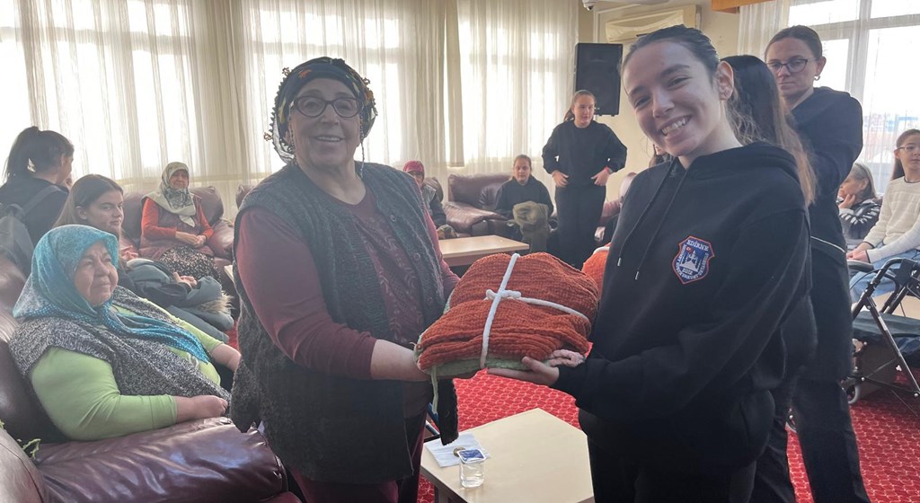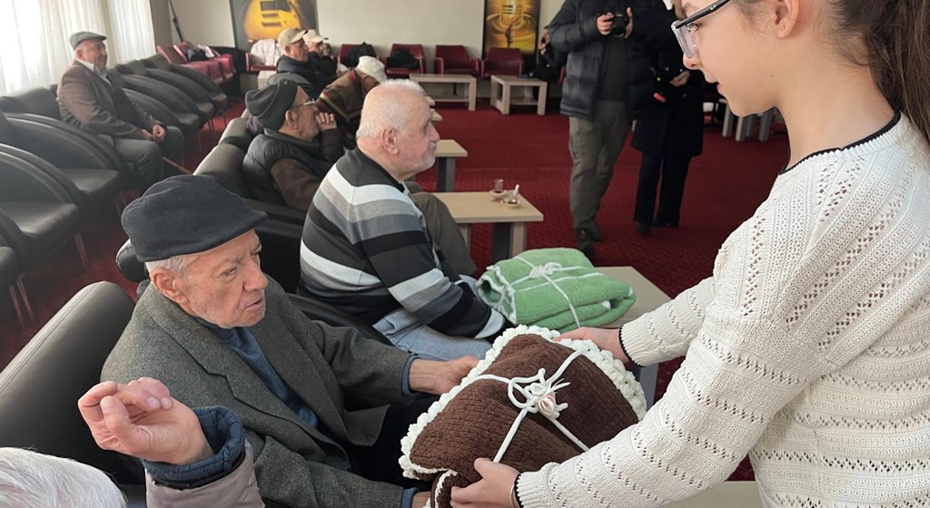 Edirne Mehmet Ruşen Erkurt Ortaokulu öğrencileri ve velileri tarafından yürütülen “El Emeği Gönül Bağı Projesi” kapsamında anlamlı bir dayanışma örneği sergilendi. Proje çerçevesinde öğrenciler, velilerinin de desteğiyle el emeğiyle ördükleri battaniyeleri Edirne Aile ve Sosyal Hizmetler İl Müdürlüğüne bağlı huzurevinde kalan yaşlılara hediye etti.