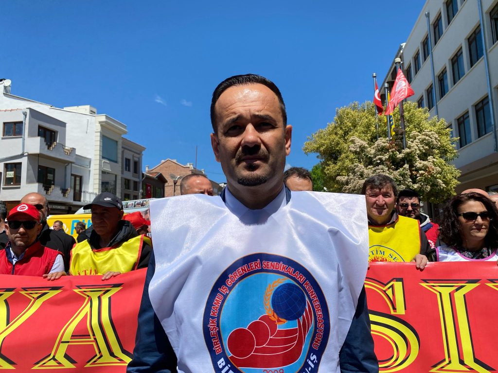Katılımcılar adına basın açıklamasını yapan Birleşik Kamu-İş Edirne Temsilcisi Nedim Zobar, 1 Mayıs kapsamında taleplerini açıkladı. Zobar; “Emeğin ve emekçinin sömürülmediği, sendikal hak ve özgürlüklerin, örgütlenmenin, hak arama yollarının önünün açıldığı, grevlerin yasaklanmadığı, herkesin güvenceli, kadrolu çalıştığı bir işinin ve insanca yaşamaya yetecek bir ücretinin olduğu, ekonomik krizlerin, salgınların, depremlerin, afetlerin faturasının halka ve emekçilere yıkılmadığı, kimsenin kimliğinden, inancından, cinsiyetinden dolayı ikinci sınıf yurttaş muamelesi görmediği, kadınlara yönelik şiddet, taciz ve tecavüzün son bulduğu, düşünce ve ifade özgürlüğünün suç olarak değerlendirilmediği ve cezalandırılmadığı, yargının bağımsız olduğu, halk iradesine saygı duyulan, seçme seçilme hakkının güvence altında olduğu, eğitim ve sağlık hizmetlerinin nitelikli ve parasız olduğu, emeklilik düzenlemelerindeki adaletsizliğin giderildiği, emeklilerin insanca yaşayabileceği bir maaş aldığı, ekoloji ve çevre katliamlarına son verildiği, emeğin, eşitliğin, özgürlüğün, demokrasinin, barışın, laikliğin egemen olduğu bir ülke istiyoruz” dedi.