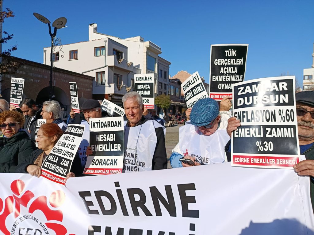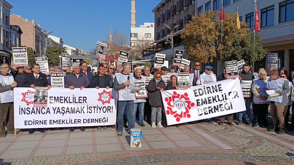 Edirne Emekliler Derneği tarafından, ülke genelinde yaklaşık 15 milyon emekliyi yakından ilgilendiren 2026 yılı maaş artışı öncesinde basın açıklaması düzenlendi. Türkiye Büyük Millet Meclisi’nde 2026 bütçesinin görüşüldüğü ve TÜİK’in açıklayacağı Aralık ayı enflasyon verilerinin beklendiği süreçte, emekliler Edirne’de bir araya gelerek insanca yaşayabilecekleri bir ücret talebini dile getirdi.