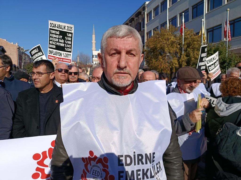 Edirne Emekliler Derneği, 2026 zammı öncesi Saraçlar Caddesi’nde bir araya gelerek, emeklilerin insanca yaşayabilecekleri maaş talebini dile getirdi. Hayat pahalılığına dikkat çeken emekliler, faturalarını yakarak tepkilerini gösterdi. Dernek Başkanı Ahmet Ziya Yaz, "Açlık sınırı 29 bin 828 lira, yoksulluk sınırı ise 97 bin 159 lira iken, emeklilerden 16 bin 881 lira gibi onur kırıcı düşük maaşla yaşamasını istenmesi insanlık dışıdır. Yıllardır maaş diye bizlere verilenler sadakadır. Bizler sadaka değil hakkımızı istiyoruz”