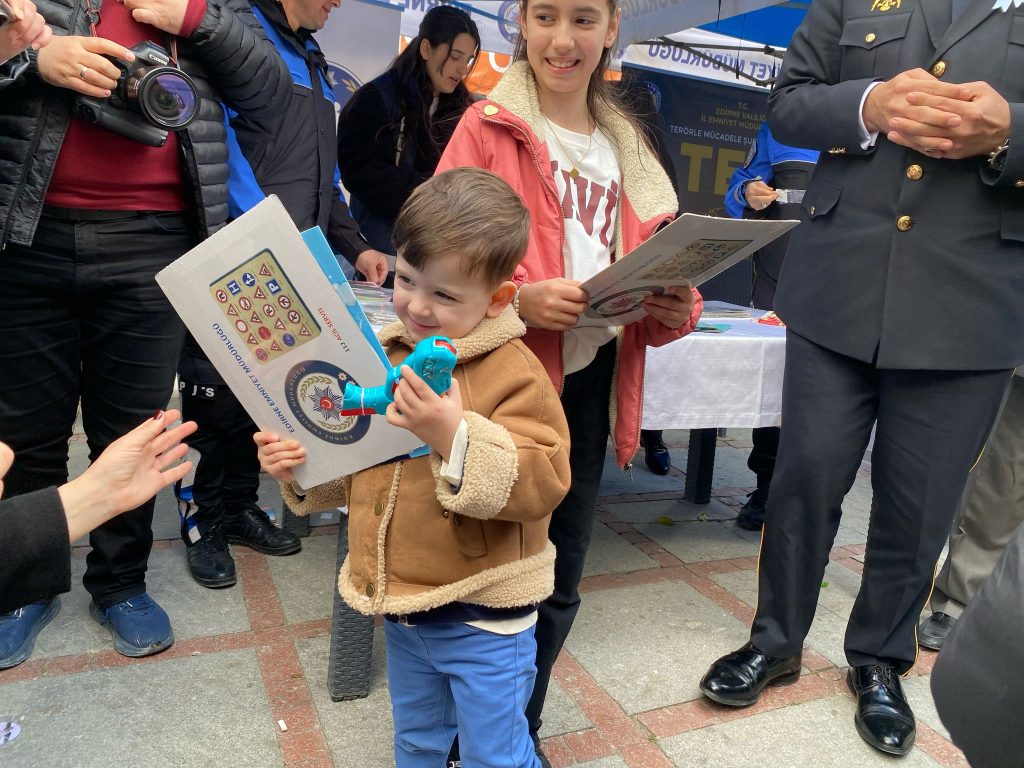 Edirne İl Emniyet Müdürlüğü tarafından, Türk Polis Teşkilatı’nın kuruluşunun 180’inci yılı ve polis haftası etkinlikleri kapsamında, kentin kalabalık Saraçlar Caddesi’nde bilgilendirici stantlar kuruldu. Not defterleri, kalemler, çocuklar için boyama kitabı ve yapbozlar gibi hediyelerin de dağıttığı stantlarda emniyetin asayiş, siber, narkotik ve trafik gibi faaliyetleri ilgili vatandaşlar bilgilendirildi. İl Emniyet Müdürü Onur Karaburun ve eşi Aynur Karaburun da stantları birlikte ziyaret etti.