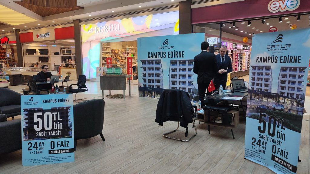ERTUR Gayrimenkul & İnşaat tarafından, Erasta AVM’de oluşturulan tanıtım alanıyla, 60 adet 1+1 daire ve 4 adet dükkândan oluşan, ‘Kampüs Edirne’ projesi hakkında vatandaşlara bilgi verildi. ERTUR Gayrimenkul & İnşaat Yönetim Kurulu Başkanı Turgay Yılmaz, Kocasinan Mahallesi’nin Edirne Otogarı’na yakın bir konumda yapılacak olan proje kapsamındaki çalışmaların, mayıs ayında başlayacağını ve dairelerin Haziran 2026’da tamamlanacağını bildirdi.