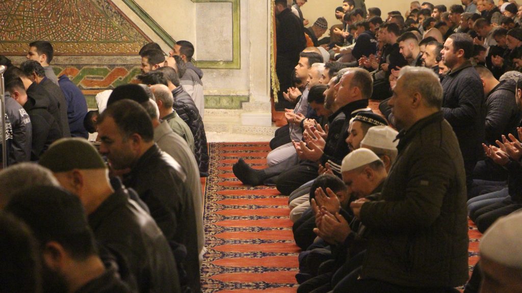 Edirne’de ‘bin aydan daha hayırlı olduğu’ kabul edilen Kadir Gecesi’nde, vatandaşlar başta kentteki tarihi camiler olmak üzere camilere akın etti. Eski Cami’ye getirilen Sakal-ı Şerif, teravih namazının ardından ziyarete açıldı. Sakal-ı Şerif’i görmek isteyen vatandaşlar, uzun kuyruklar oluşturdu.