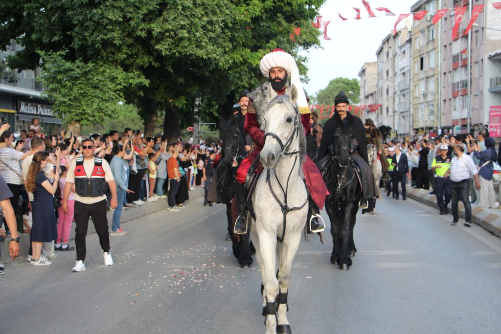 Program, Mehteran Birliği, jandarma atlı birliği ve Yeniçerilerin, fethin sembolü şahi toplarla birlikte gerçekleştirdiği yürüyüşle başladı. Yürüyüşe Edirne Valisi Yunus Sezer, Garnizon Komutanı Tuğgeneral Yüksel Kolcu, Edirne Belediye Başkanı Filiz Gencan Akın’ın yanı sıra kurum ve kuruluş temsilcileri, siyasi partiler ile sivil toplum kuruluşları da katıldı.