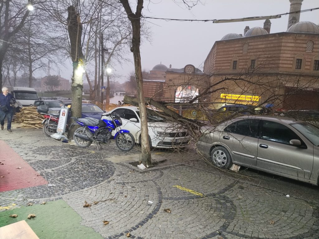 Edirne’de yağmurla birlikte etkisini artıran şiddetli fırtına, bu kez Kıyık Caddesi’nde zarara yol açtı. Çarşı istikametinden Kıyık Caddesi’ne çıkışta park halinde bulunan bir aracın üzerine ağaç devrildi.