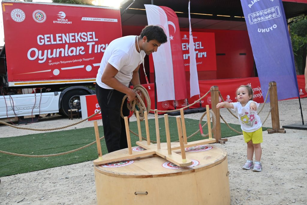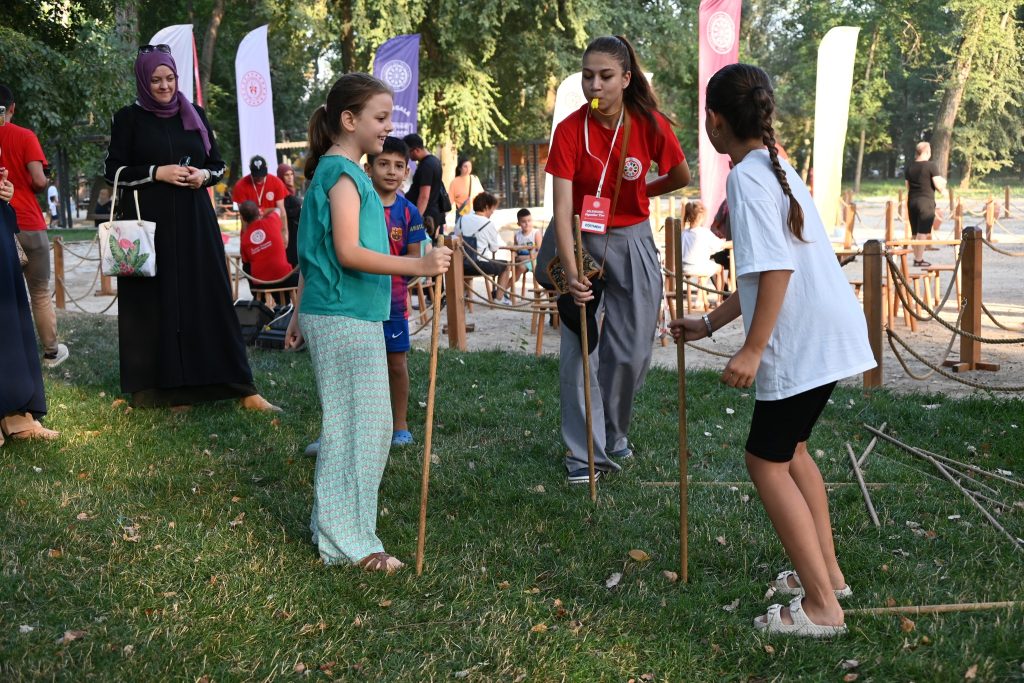 Millet Bahçesi’ne kurulan oyun alanında, mangala, okçuluk, halat çekme, onikibaş, çemberbaz ve çelik-çomak gibi geleneksel oyunlar çocukların ilgisiyle karşılaştı. Renkli görüntülere sahne olan etkinlikte, çocuklar fiziksel aktivite yaparken aynı zamanda kültürel değerlerle buluştu. Ailelerin de yoğun ilgi gösterdiği programda, çocuklar gün boyu süren etkinliklerde eğlenceli vakit geçirdi.