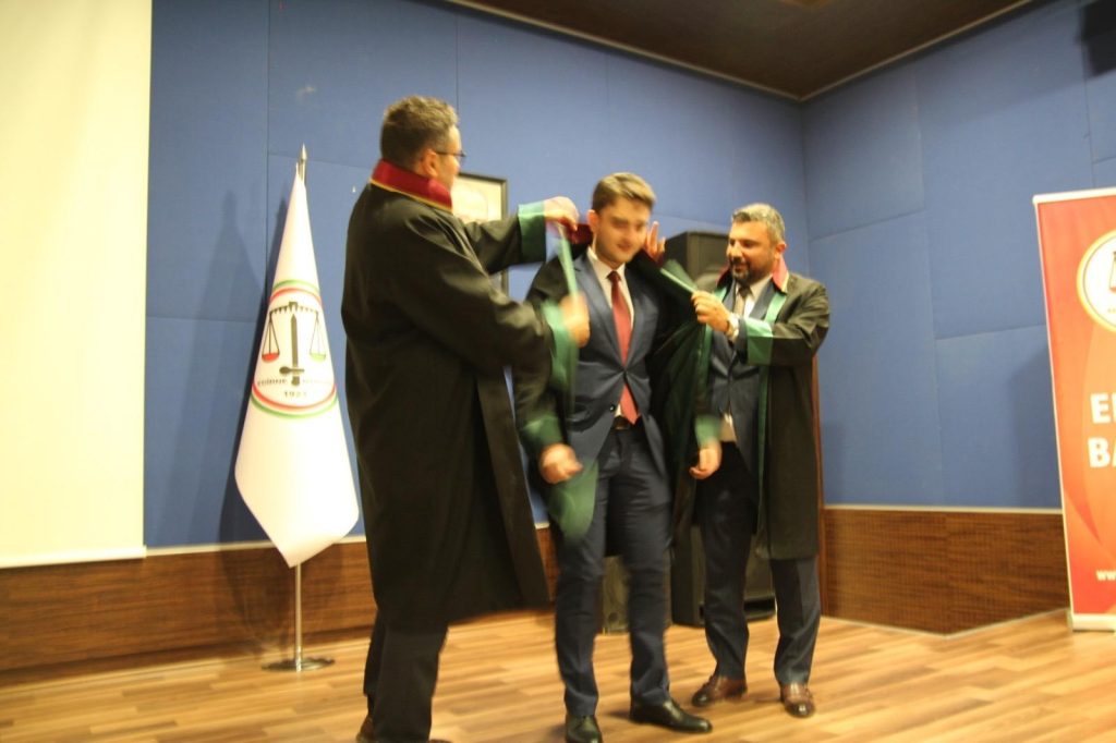 Edirne Barosu’nun en yeni avukatı Alperen Açıkbaş, yemin edip cübbe giyerek görevine başladı. Avukat Fatih Coşkun’un yanında stajını tamamlayan Alperen Açıkbaş için Edirne Barosu’nda yemin töreni düzenlendi. Yemin töreni saygı duruşu ve İstiklal Marşı’nın okunması ile başladı.
