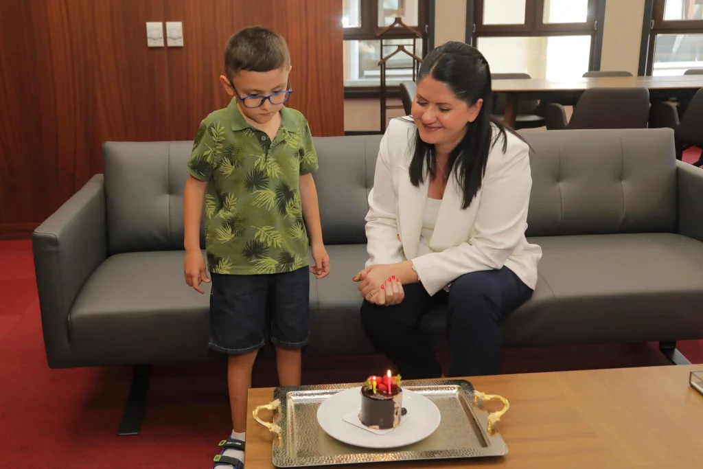 Ziyaretin en özel anlarından biri ise, küçük Aras’ın doğum günü oldu. Başkan Gencan, Aras’ın doğum gününü kutlayarak kendisine sürpriz yaptı. Renkli görüntülere sahne olan kutlamada Aras; ailesi ve Başkan Gencan ile birlikte yeni yaşının mutluluğunu paylaştı.