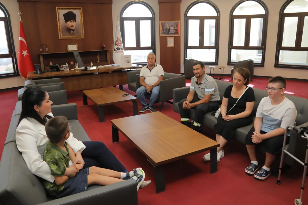 Edirne Belediye Başkanı Av. Filiz Gencan, Sabuni Mahallesi’ndeki ziyaretinde tanışmak istediklerini ileten Asrın ve Aras Dıramalı kardeşleri unutmadı. Başkan Gencan, yeni Eğitim-Öğretim yılı öncesinde Dıramalı Ailesini makamında ağırladı.