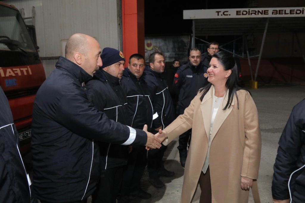 Edirne Belediye Başkanı Filiz Gencan, 2026 yılına saatler kala kentte görev başında olan kamu kurum ve kuruluşlarının personelini ziyaret ederek yeni yıllarını kutladı. Gece boyunca sahada olan Gencan, Edirne’nin huzuru ve güvenliği için görev yapan çalışanlara moral verdi.