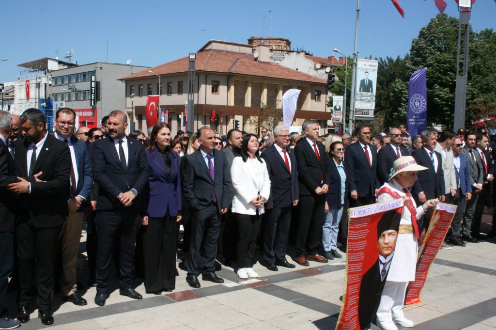 Atatürk Anıtı önünde düzenlenen törende, çelenk sunumu yapıldı, ardından saygı duruşunda bulunularak İstiklal Marşı okundu.
