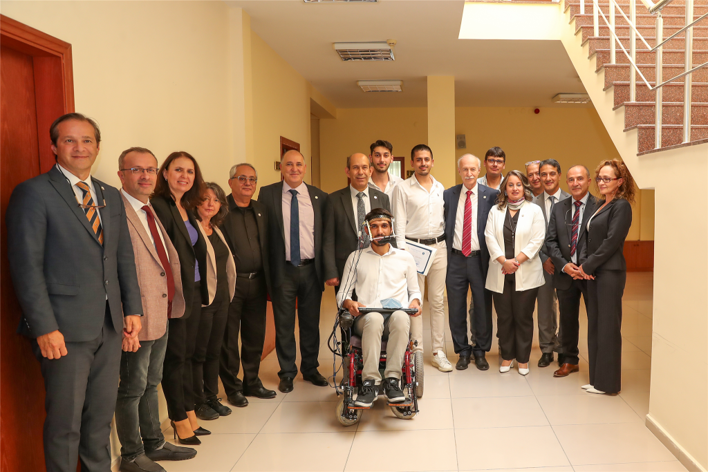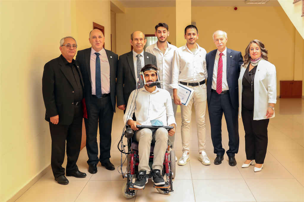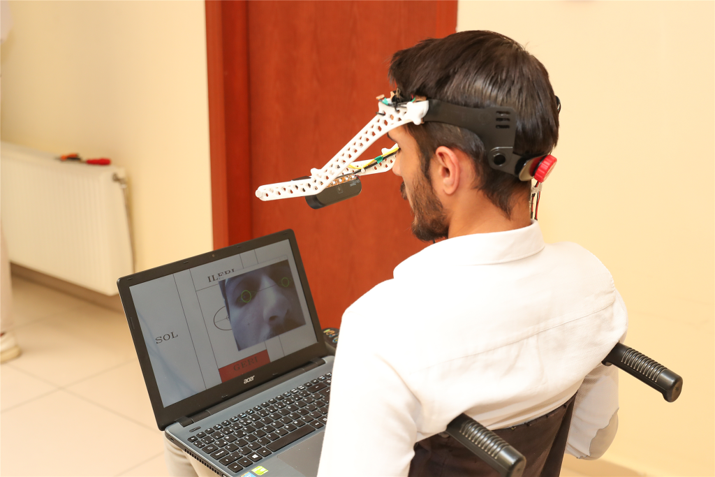 Göz bebeğinin aşağı yukarı, sağa sola hareketiyle kumanda edilebildiği gibi çevredeki engelleri algılayabilen tekerlekli sandalye projesi TEKNOFEST finallerinin en dikkat çeken projeleri arasında yer aldı.