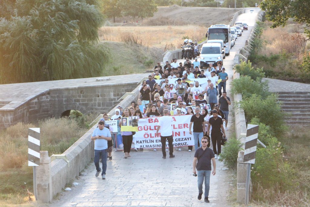 Edirne’de, lise bahçesinde 30 bıçak darbesiyle katledilen 15 yaşındaki Gülden Coni’nin ailesi, çocuk cinayetlerine tepki göstermek amacıyla yürüyüş düzenledi. Yıldırım Hacısarraf Mahallesi’nden başlayan yürüyüş, Saraçlar Caddesi’nde son buldu. Ellerinde pankartlar ve dövizler taşıyan kalabalık, “Çocuklar için adalet” sloganları attı.