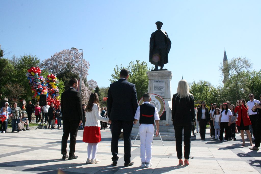Türkiye Cumhuriyeti’nin kurucusu Ulu Önder Gazi Mustafa Kemal Atatürk’ün çocuklara armağan ettiği 23 Nisan Ulusal Egemenlik ve Çocuk Bayramı, Edirne’de coşkuyla kutlandı. Kutlama etkinlikleri kapsamında İstiklal Ortaokulu 5’inci sınıf öğrencisi Tuana Aslan bir günlüğüne vali olurken, Balkan Çocuk Şenliği kapsamında kente Balkan ülkelerinden gelen halk oyunları ekiplerinden temsilciler Edirne Valisi Yunus Sezer’i ziyaret etti. İl Milli Eğitim Müdürlüğü tarafından Atatürk Anıtı’na çelenk sunulurken, Saraçlar Caddesi’nde kurulan stantlarla, çocuklar doyasıya eğendi. Etkinlikler, 8 Balkan ülkesinden toplam 10 halk oyunu ekibinin hazırladığı gösterilerle devam etti.
